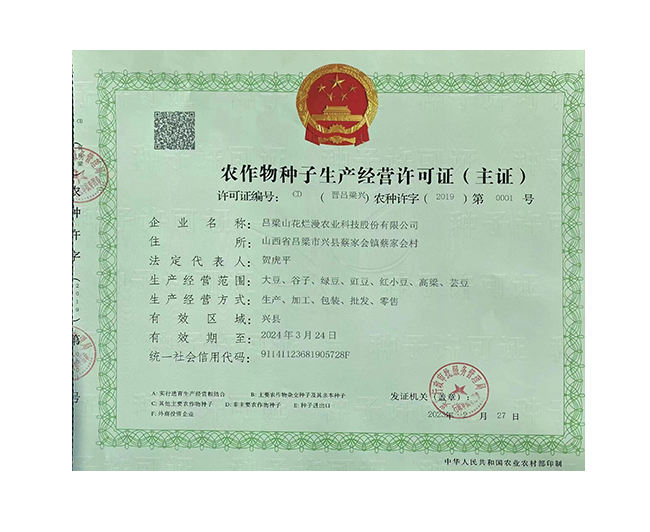 呂梁山花爛漫農(nóng)業(yè)科技股份有限公司是山西省農(nóng)業(yè)產(chǎn)業(yè)化重點龍頭企業(yè),公司成立于2008年,法人代表賀虎平,注冊資本1000 萬元,現(xiàn)有員工 30 人。公司位于興縣蔡家會鎮(zhèn)蔡家會村建有占地面積1萬多平方米生產(chǎn)區(qū)和辦公區(qū),年總加工雜糧能力達到4萬噸。擁有一套日精加工50噸谷子成套設(shè)備生產(chǎn)流水線;擁有一套日精加工30噸豆面、蕎面設(shè)備流水生產(chǎn)線;擁有一套日精加工50噸紅小豆、豇豆、綠豆、腎型黃豆、紅蕓豆設(shè)備流水生產(chǎn)線,2020年引進省農(nóng)科院農(nóng)產(chǎn)品加工研究所谷子精深加工技術(shù),目前設(shè)計年產(chǎn)300噸的小米油加工一條龍生產(chǎn)線已經(jīng)安裝調(diào)試完畢,產(chǎn)品經(jīng)化驗達到國家一級油標準,并獲得兩項專利證書。主要產(chǎn)品有“山花爛漫”牌有機小米、綠色小米各種精美包裝系列;蔡家會村豇豆面、豌豆面等雜糧面、手搟豆面系列、以及有機精品雜糧系列。擁有“山花爛漫”山西省著名商標。公司采用線下和線上銷售相結(jié)合的營銷模式。